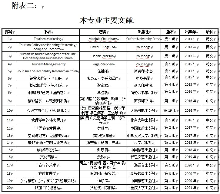 旅游管理专业硕士培养方案(专业学位125400)