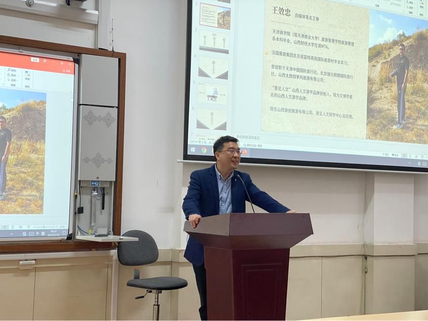 MTA研究生王效忠总经理特邀主讲,旅游管理教研室主任朱林芳主持讲座,2020级旅游管理专业全体学生参加。