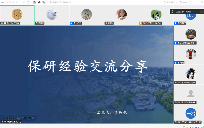 2026年1月21日晚8点,文化产业管理专业小学期实践活动——科研训练类实践项目讲座“研途有光:与学姐们走好备考每一步”在线上如期举行。本场讲座特邀文化产业管理专业五位成功保研的学姐,面向大一至大三年级学生,系统分享保研准备与应试经验,助力学子明晰方向、踏实前行,讲座由贾垚焱老师主持。